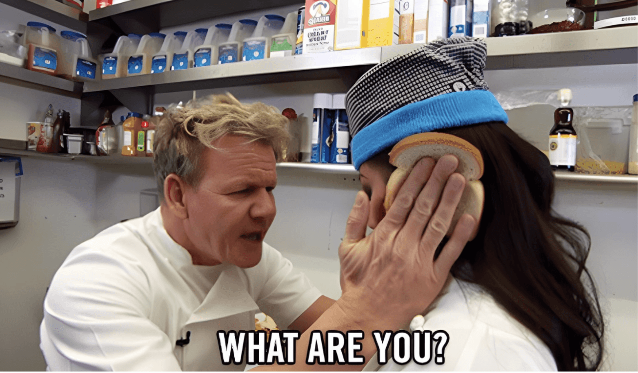In the scene, Ramsay holds slices of bread on both sides of a contestant’s head and asks, “What are you?” prompting her to reply, “An idiot sandwich,” a clip that quickly spread online and became a global meme.