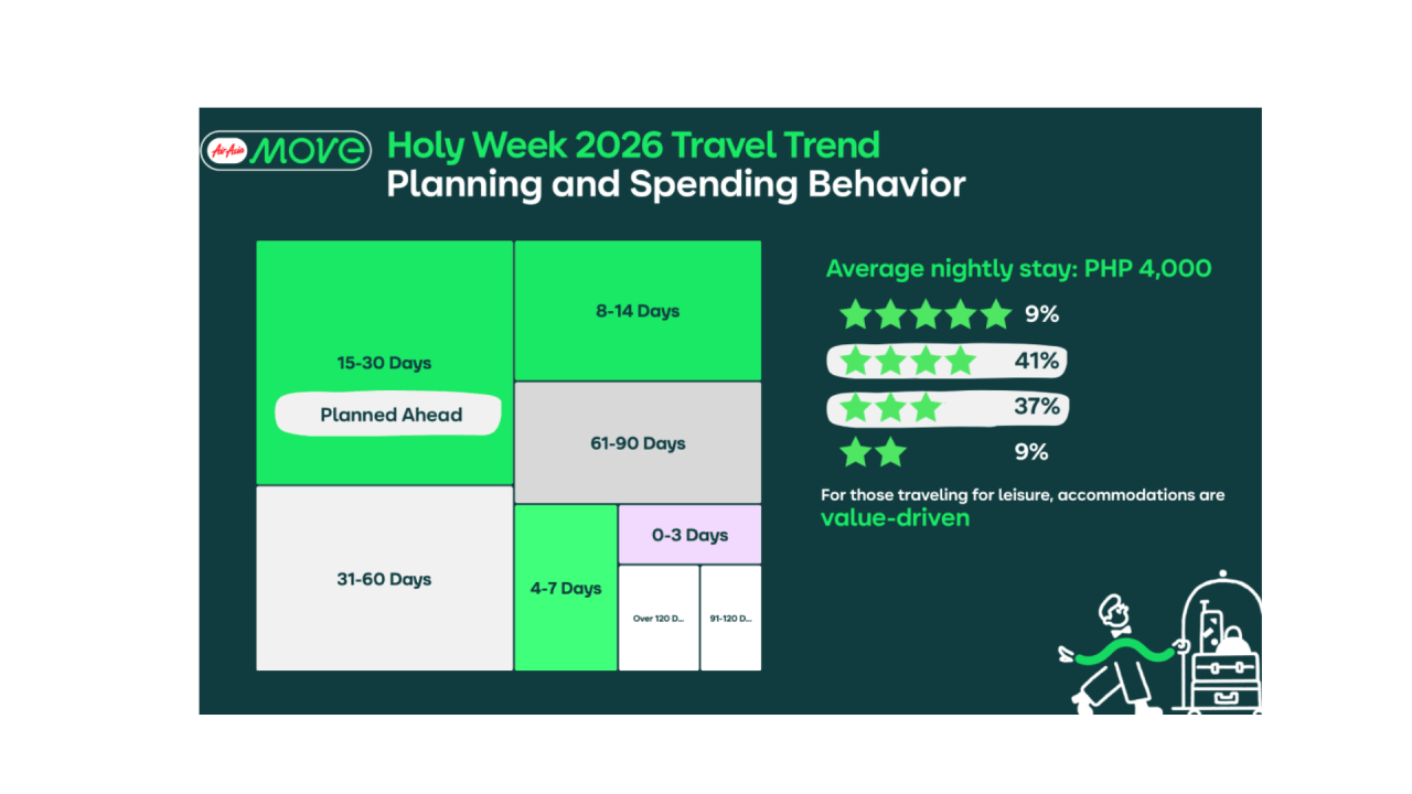 Filipinos are approaching Holy Week travel with intention—prioritizing meaningful homecomings while making room for quick, value-driven getaways. —Princess Daisy C. Ominga | Ed: Corrie S. Narisma