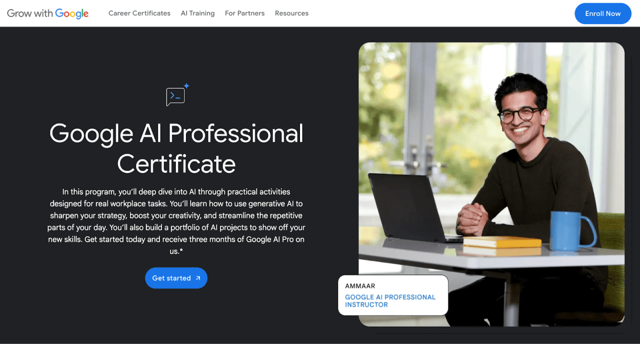 Enrollment includes three months of free access to Google AI Pro, enabling learners to work with advanced AI models directly within familiar tools such as Gmail, Google Docs, and Gemini in Google Sheets.
