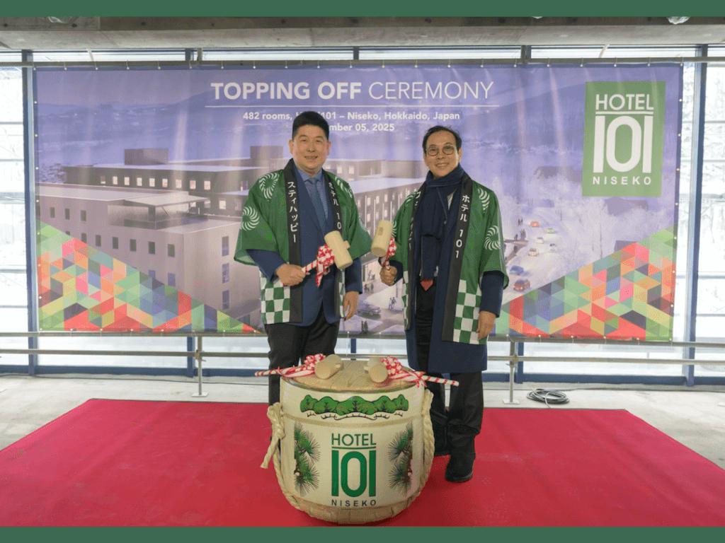 The topping-off ceremony held on December 5, 2025 signals the shift from structural works to full-swing interior finishing. Once completed, the 1.17-hectare property is expected to become the largest hotel in the heart of Hirafu by room count, about two minutes by shuttle from the Grand Hirafu ski lifts.