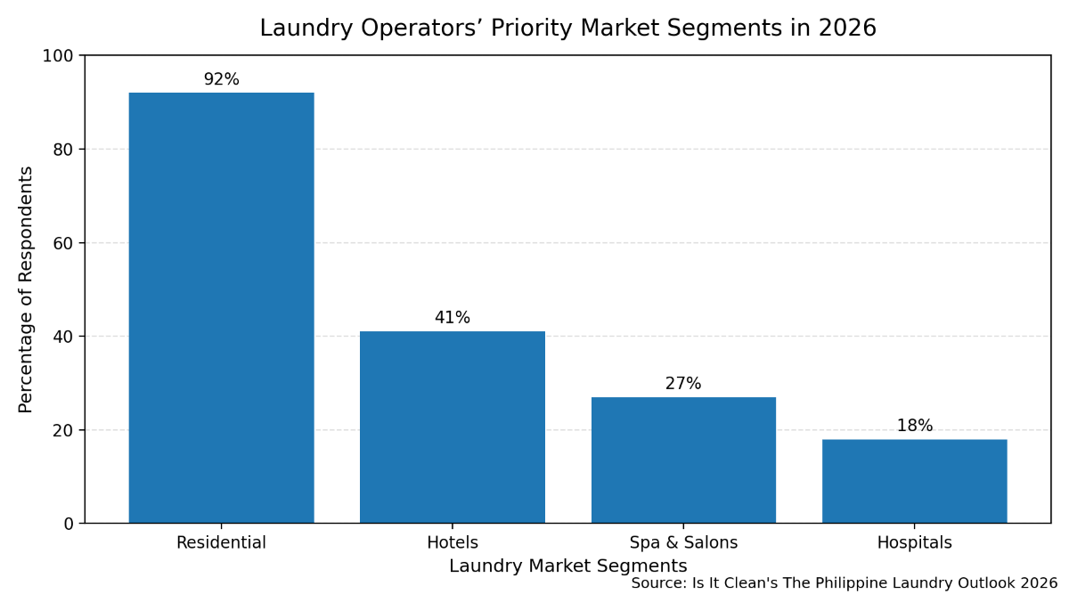 “Residential is still the bread and butter. But operators are now diversifying. Which means operators could be operating a portion for residential but are now catering to institutions, such as hotels,” said Paolo Abellanosa, managing director of Is It Clean, to InsiderPH. “In 2025, 38 percent are already focusing on hotels. In 2026, this will be 41 percent. This has been the trend for the last three years.”