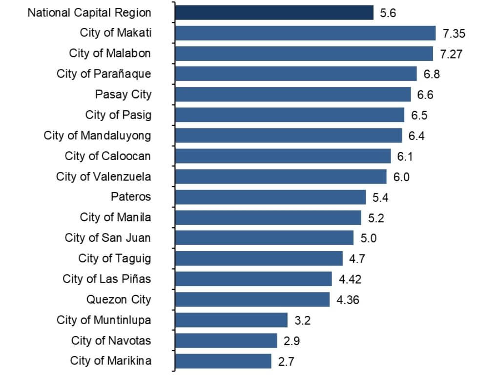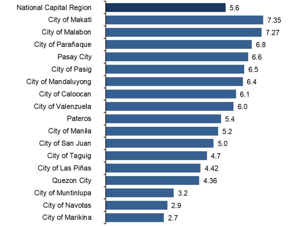 The City of Makati posted the fastest GDP growth in the region at 7.35 percent, followed closely by Malabon City at 7.27 percent. Both outpaced the NCR’s overall economic expansion rate of 5.6 percent for the year.