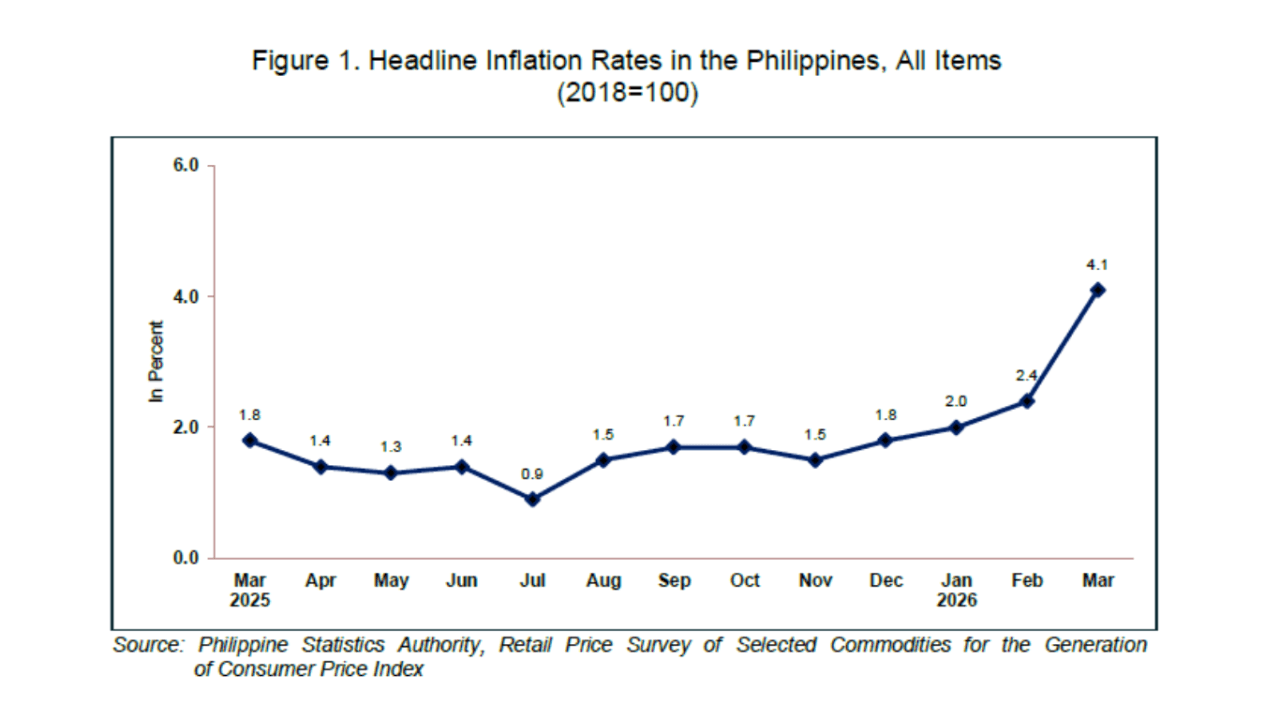 Headline inflation rose to 4.1 percent from 2.4 percent in February, pushing the first-quarter average to 2.8 percent and marking a sharp increase from 1.8 percent a year earlier.
