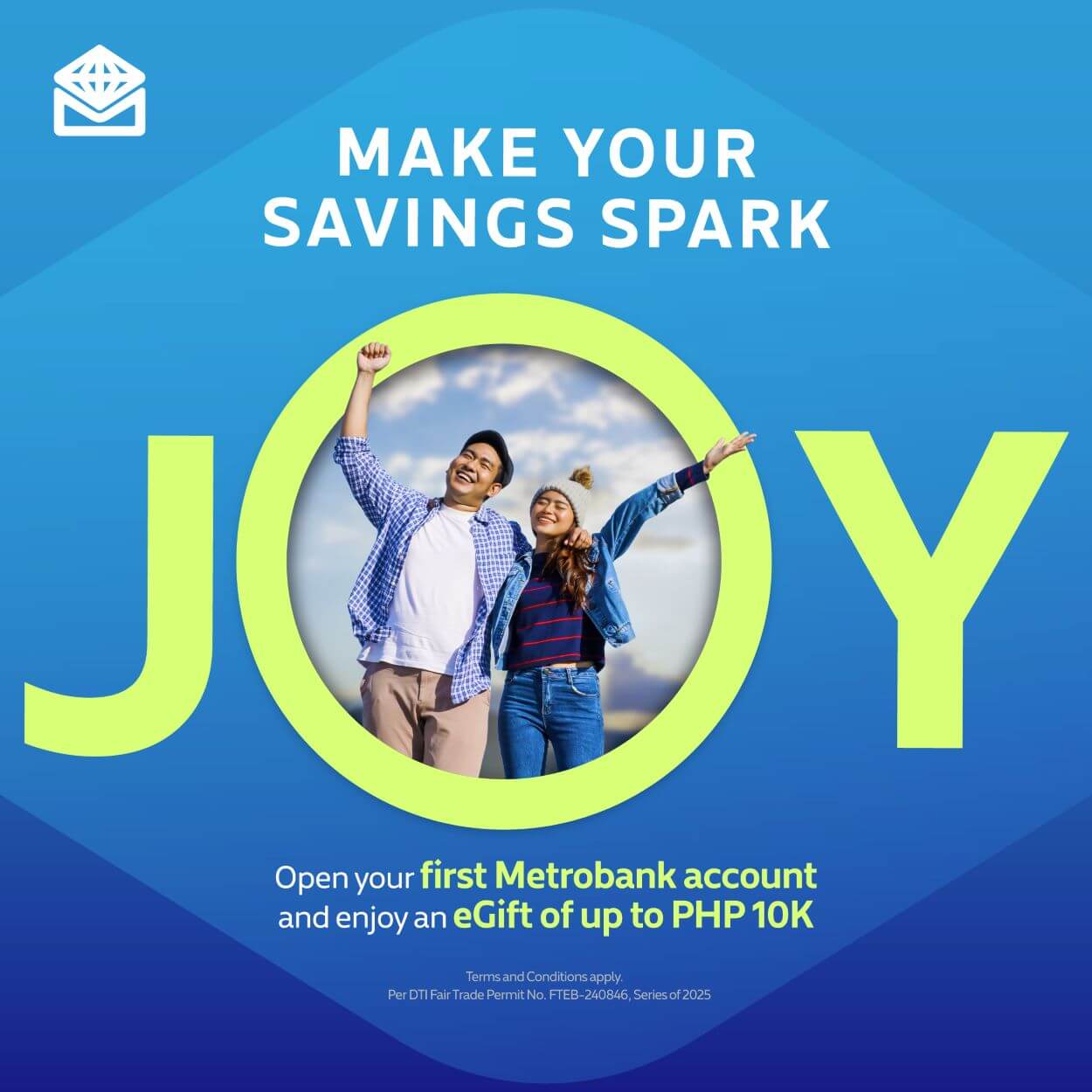Metrobank, in a press release, said it believes that saving is more than just adding numbers to an account — it’s about building toward the life you envision. With the Spark Joy Promo, the bank gives savers an extra reason to feel good about setting money aside through guaranteed eGifts of up to P10,000.