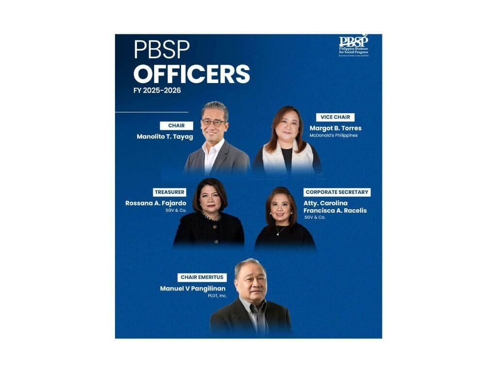 The group also named Margot B. Torres as vice chair, Rossana A. Fajardo as treasurer, and Carolina A. Racelis as corporate secretary. Manuel V. Pangilinan, PBSP’s longest-serving chair, will become its first-ever chair emeritus while continuing as a trustee.