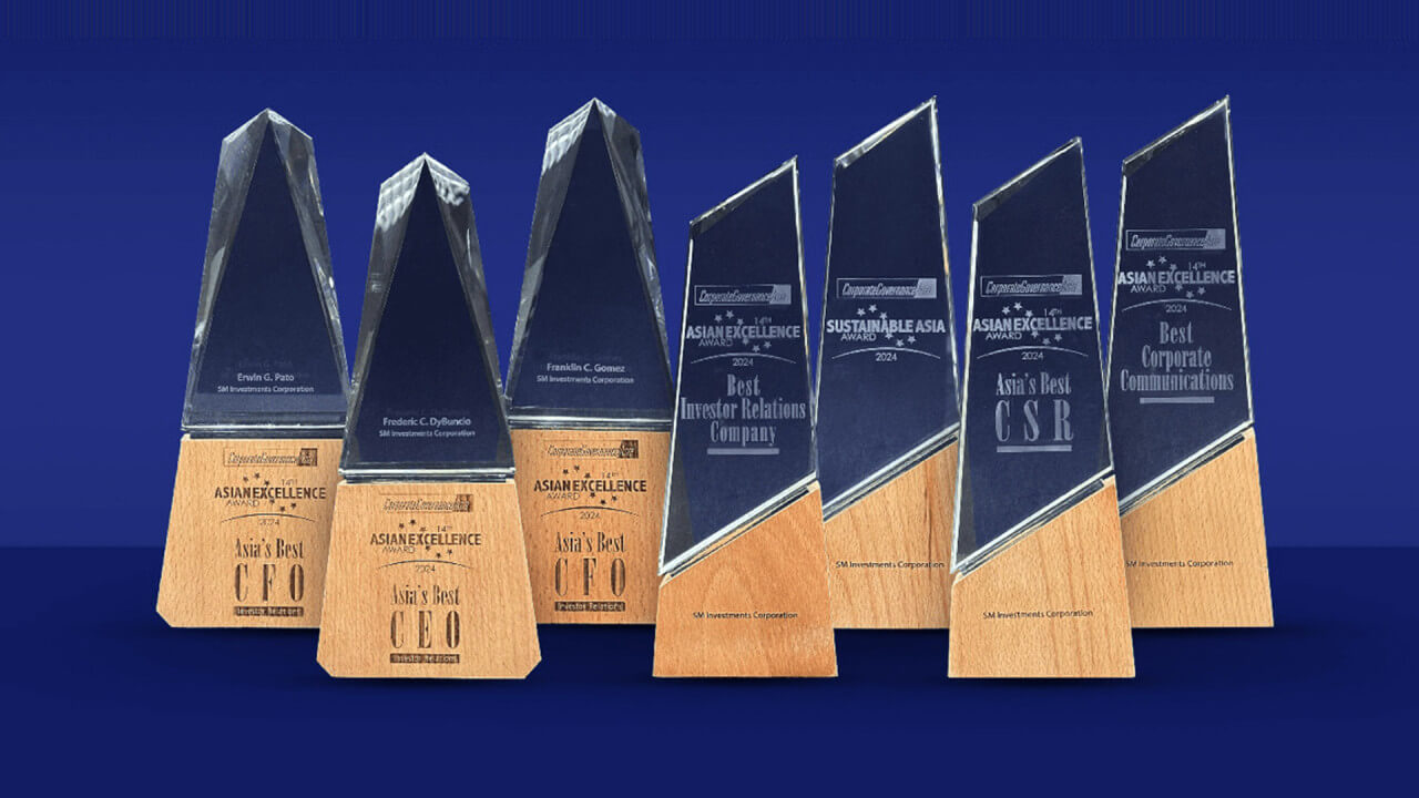 SM Investments Corp. bagged seven awards, including best CEO in Asia and corporate communications, at the prestigious Asian Excellence Awards by Corporate Governance Asia magazine.